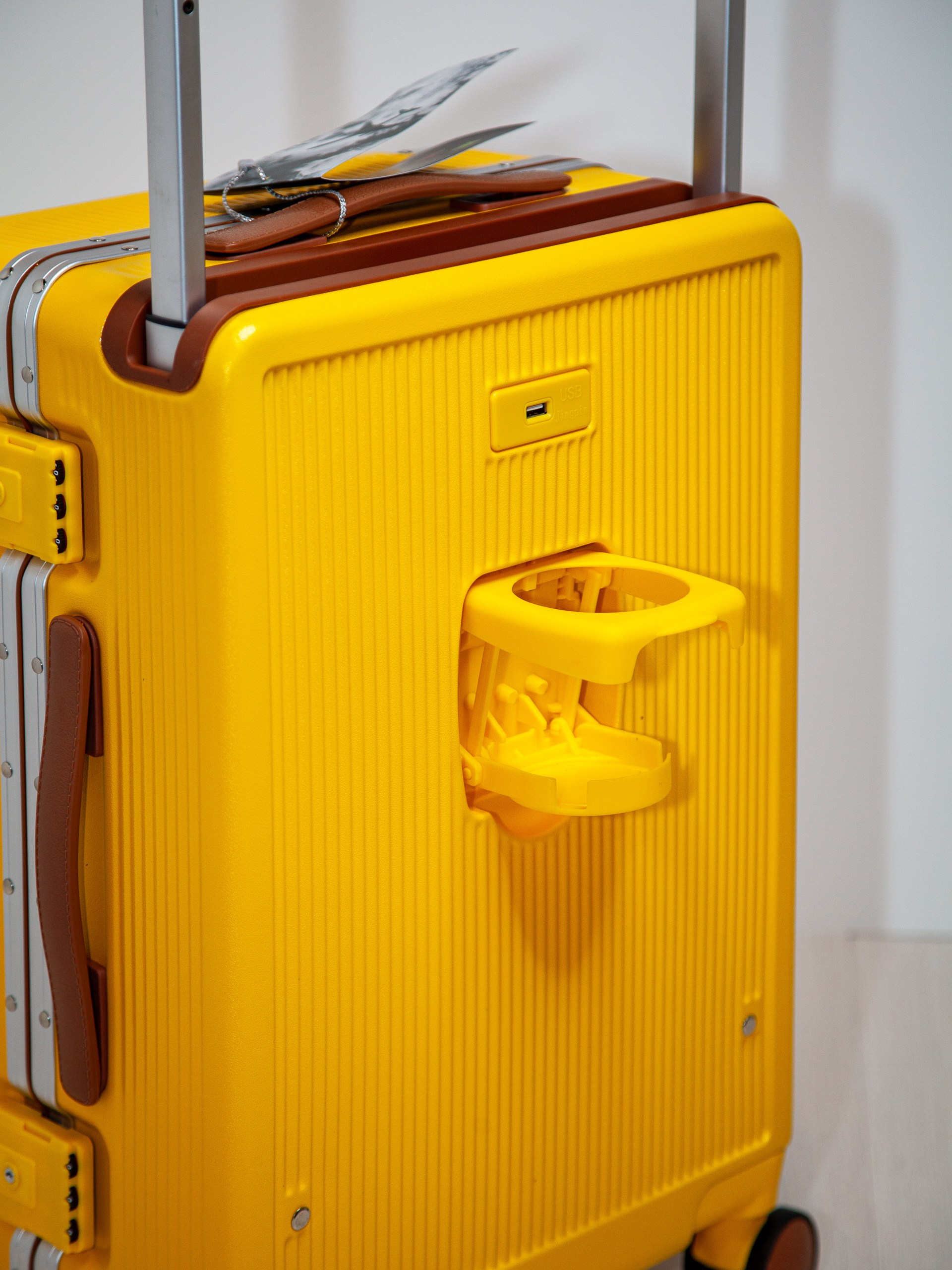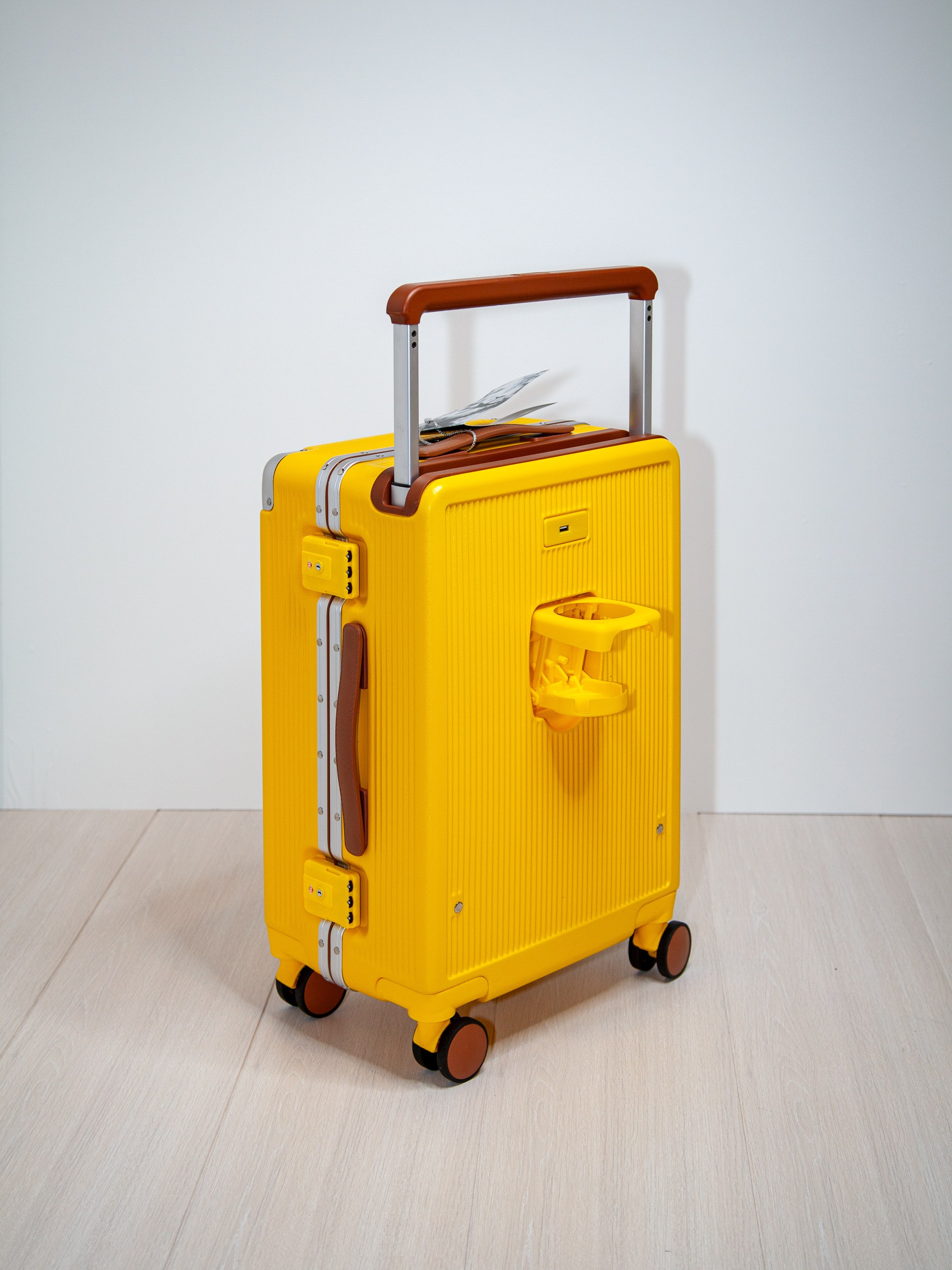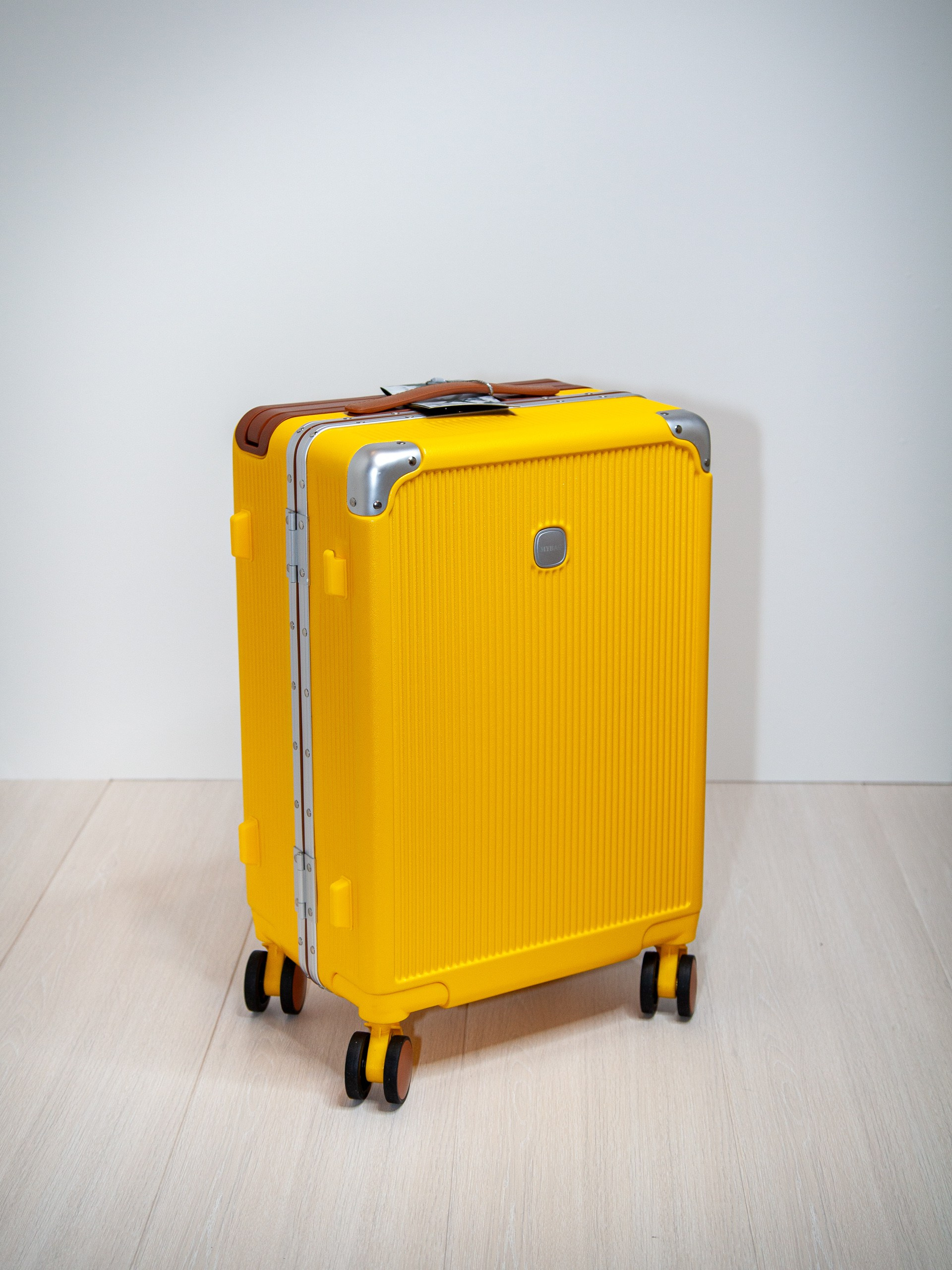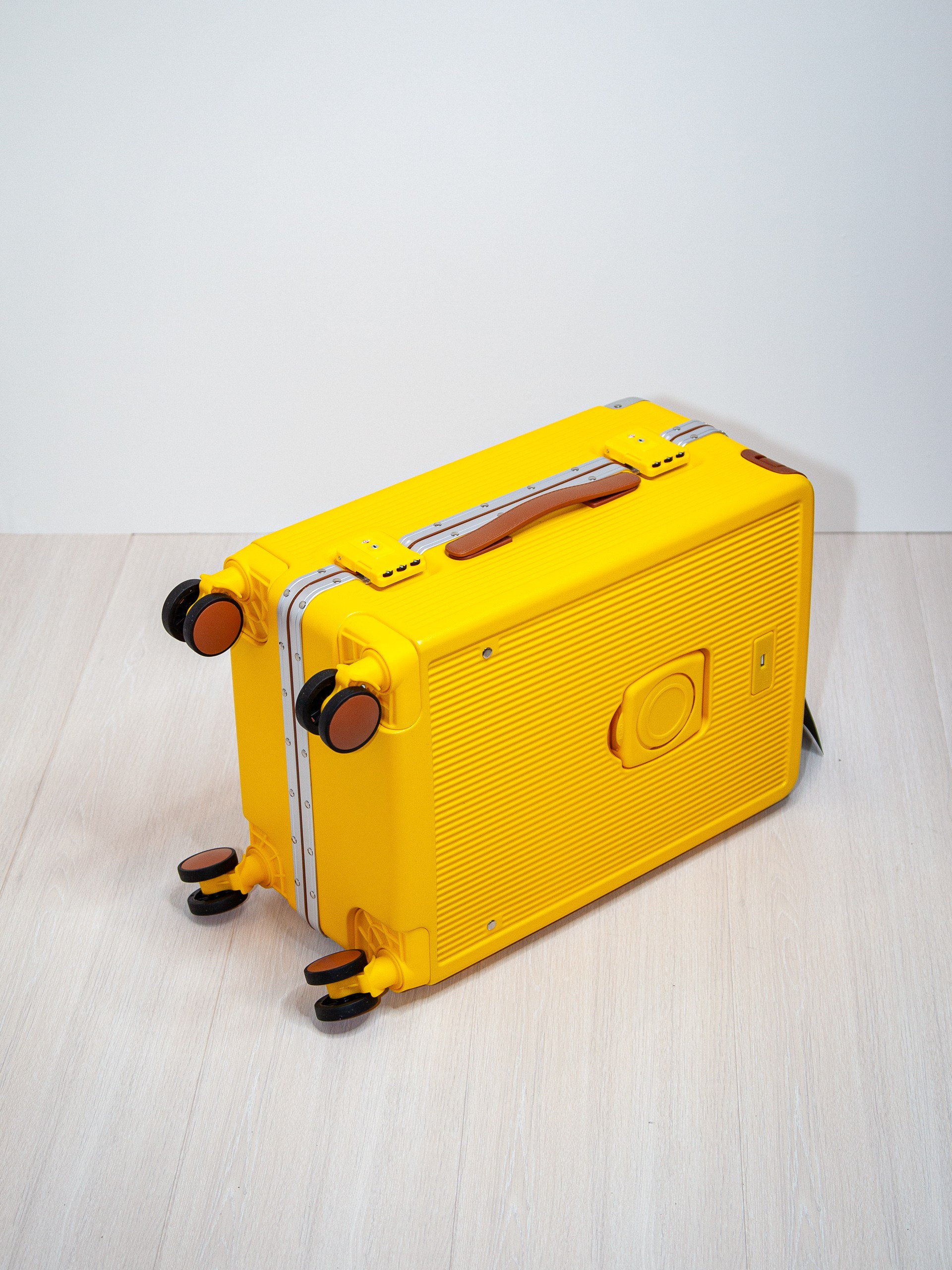 Чемодан на колесах из поликарбоната желтый