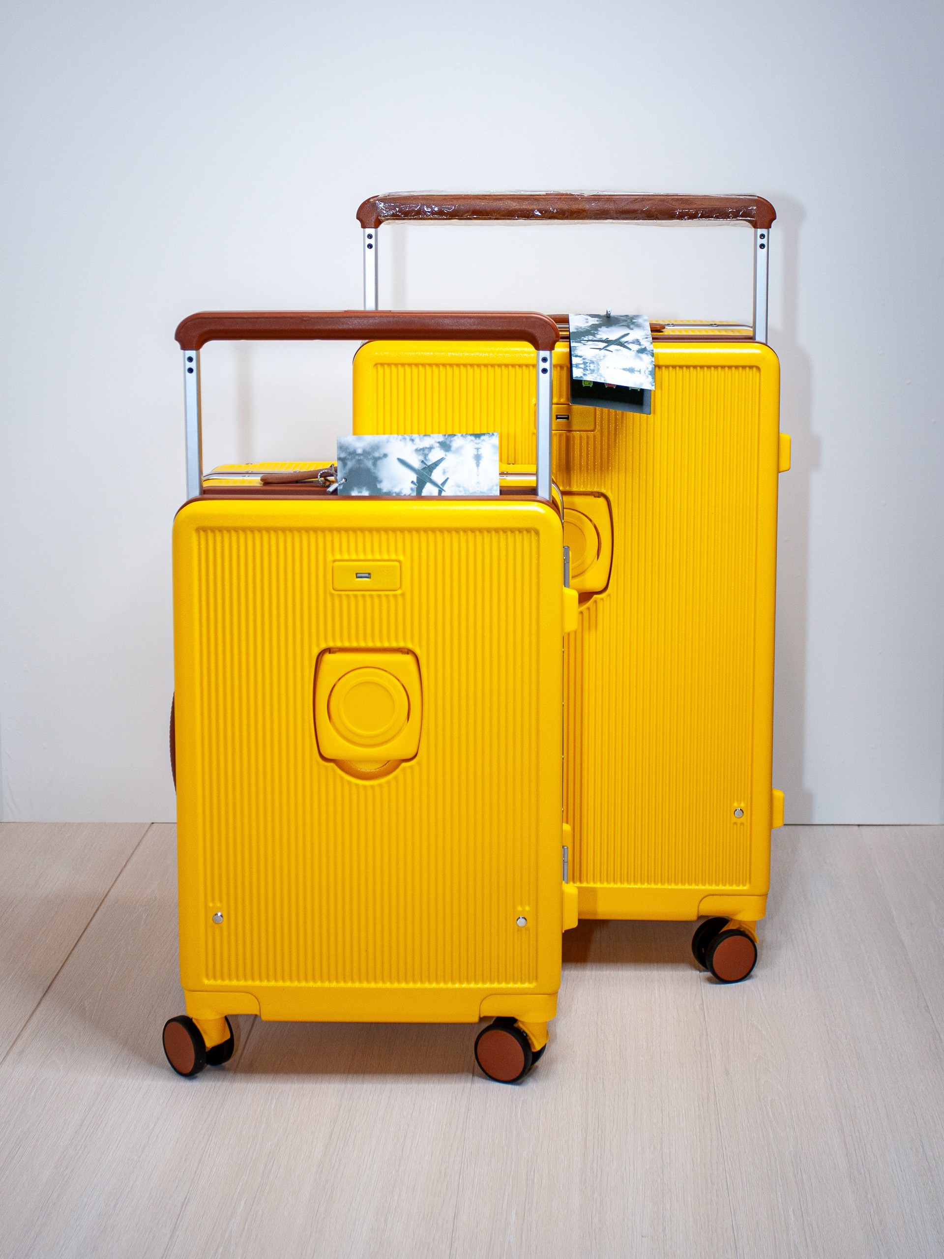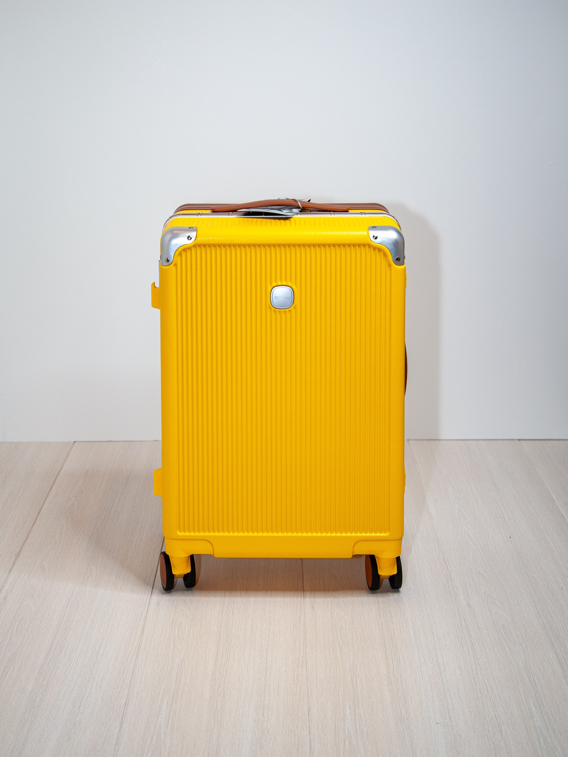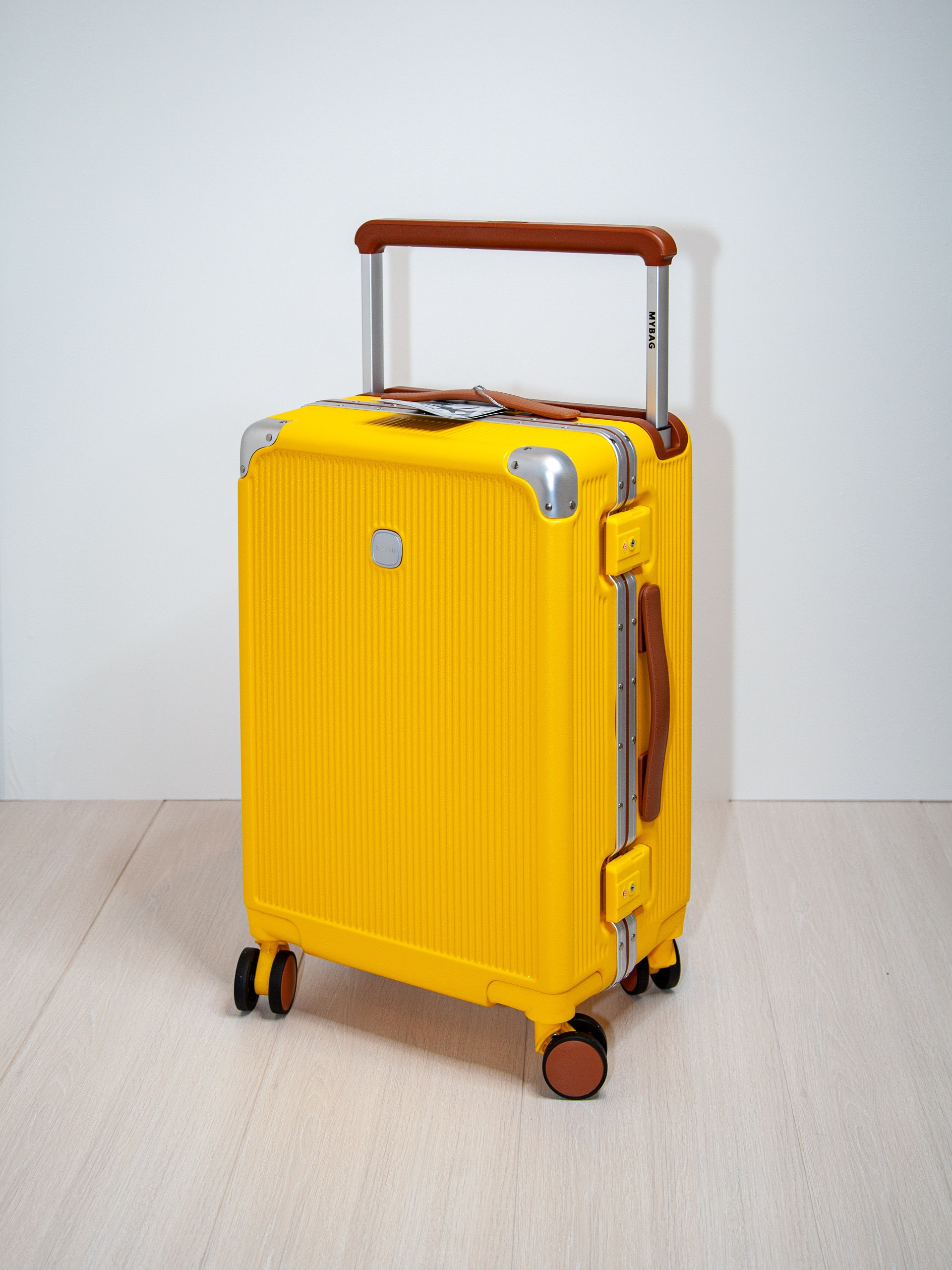 Чемодан на колесах из поликарбоната желтый