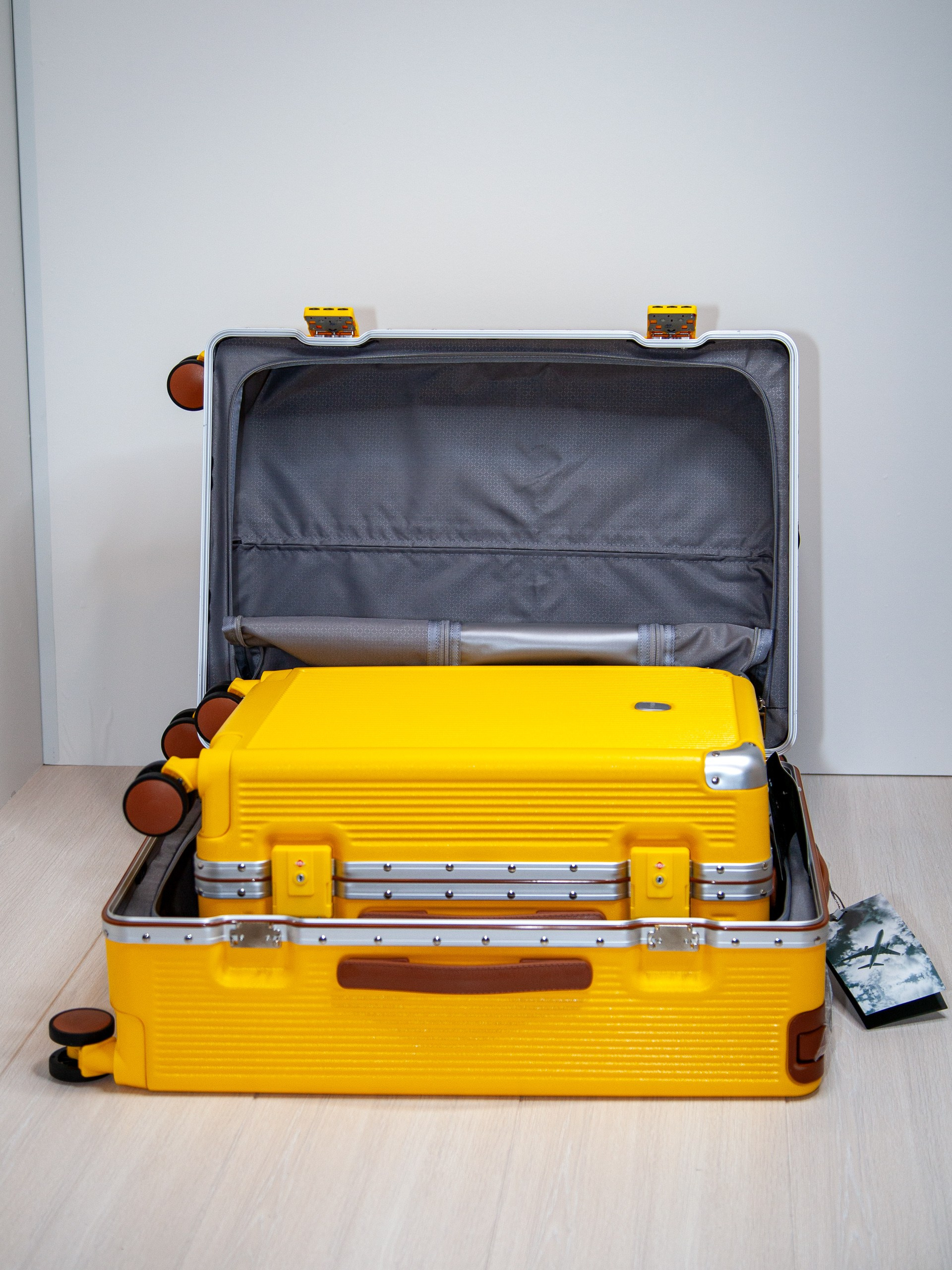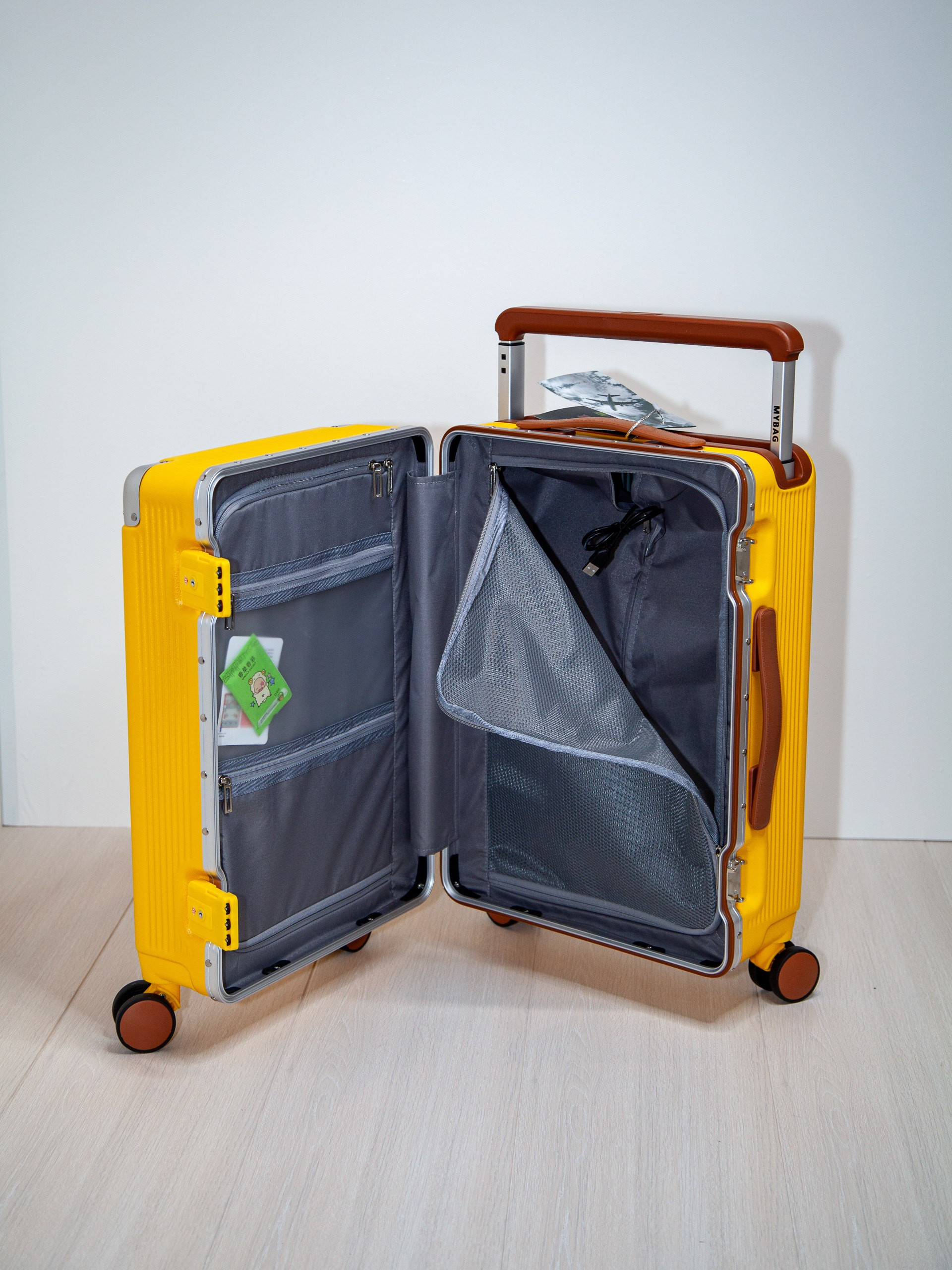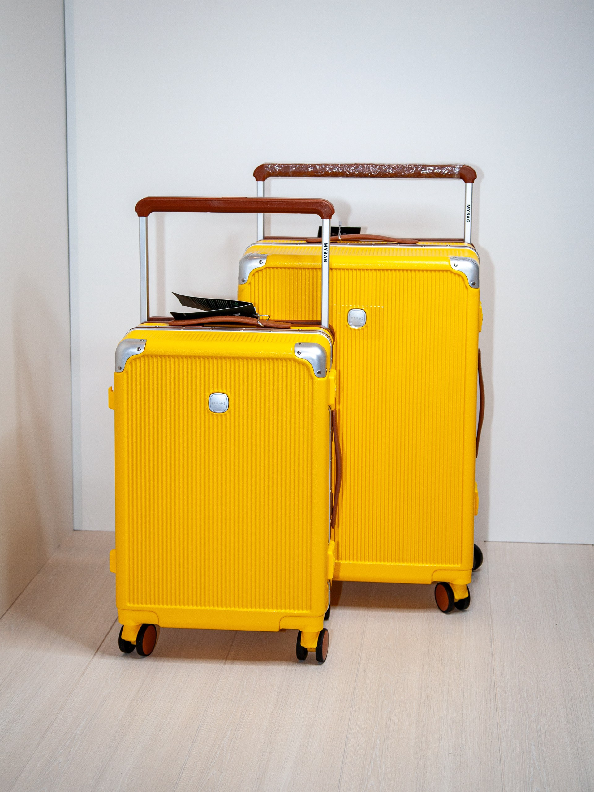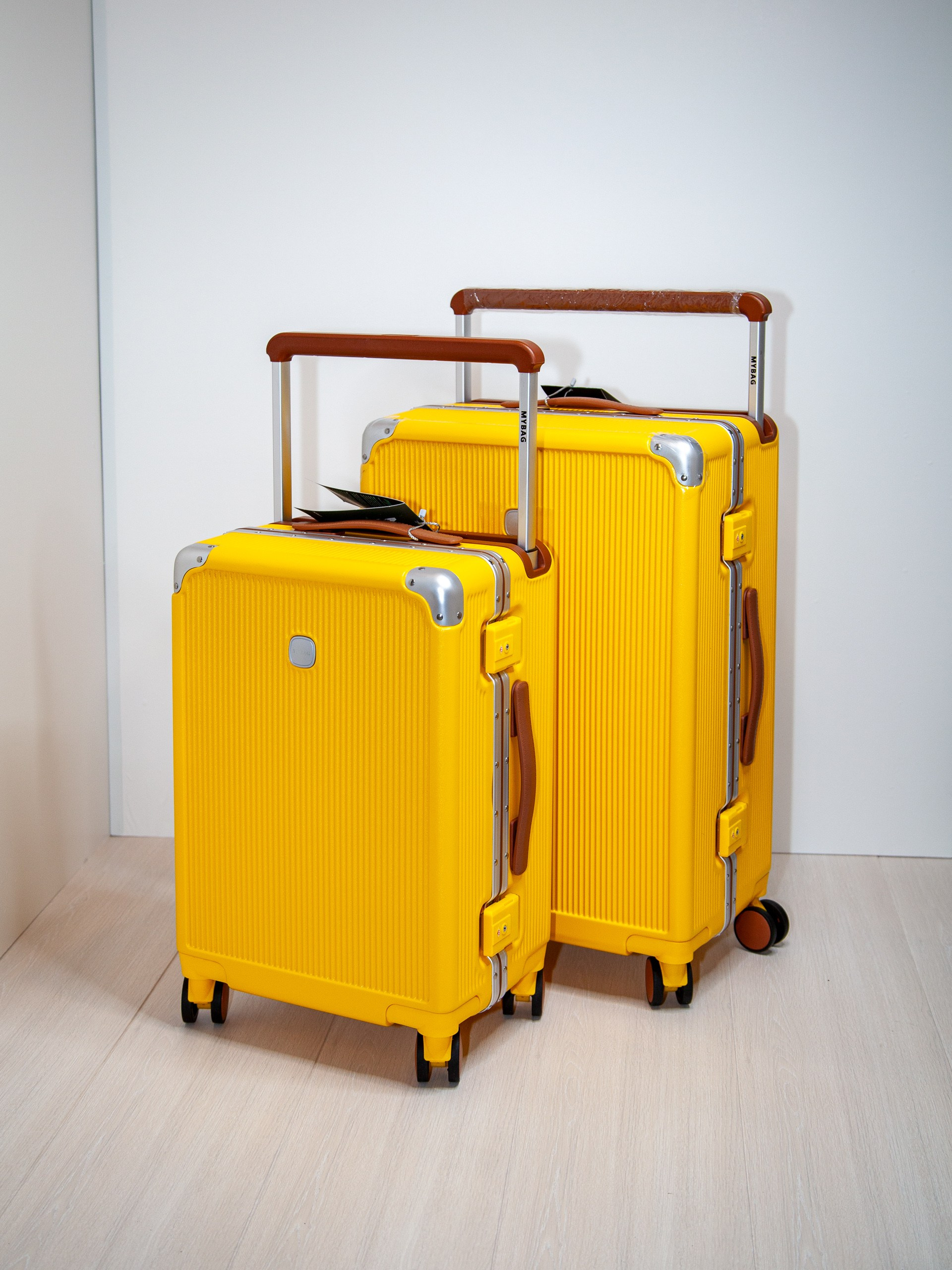 Чемодан на колесах из поликарбоната желтый
